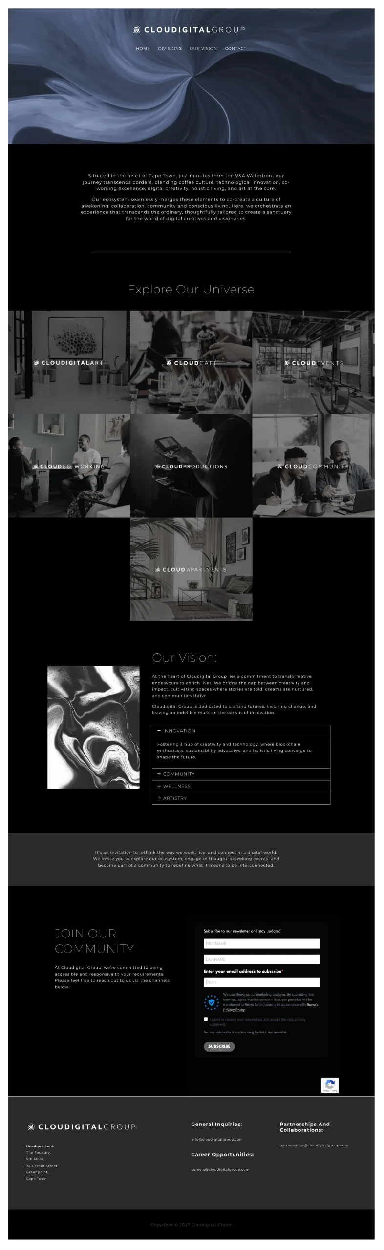 Situated in the heart of Cape Town, just minutes from the V&A Waterfront our journey transcends borders, blending coffee culture, technological innovation, co-working excellence, digital creativity, holistic living, and art at the core.